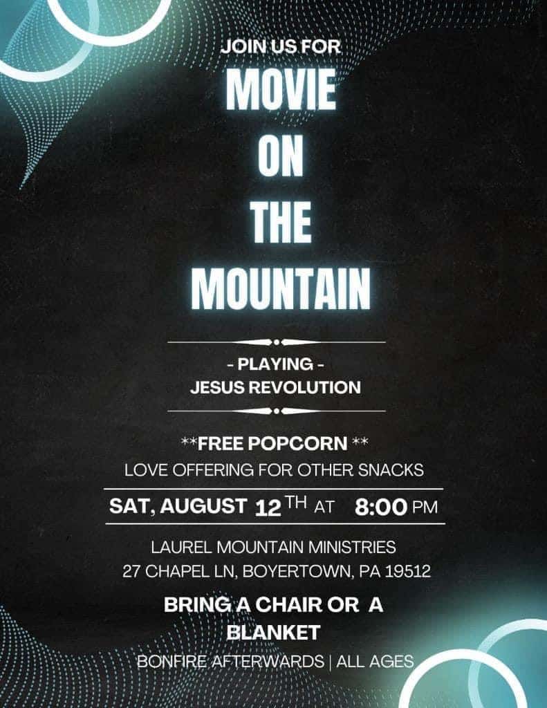 Join Laurel Mountain Ministries for another Movie on the Mountain on August 12th beginning at 8:00 p.m. The event is free and open to both the public and the faith community.